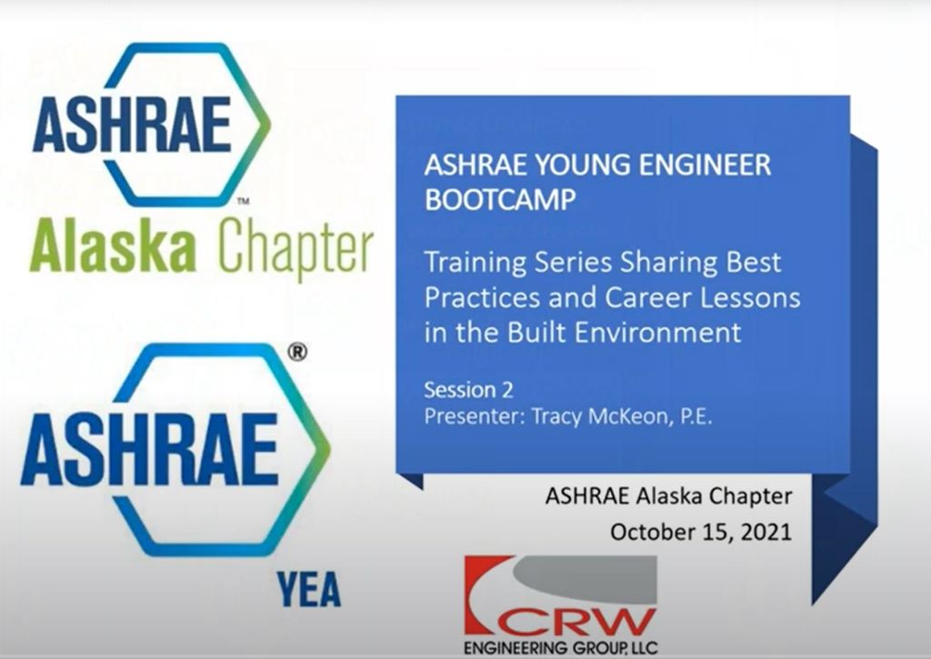 The second session in the ASHRAE Young Engineer Bootcamp series is now available for watching, on-demand. This second session, presented by Tracy McKeon, PE with CRW Engineering Group, LLC focuses on “Ethics in Engineering.”